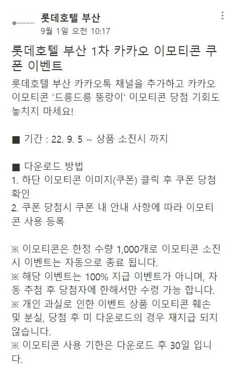 롯데호텔 부산 1차 카카오 이모티콘 쿠폰 이벤트