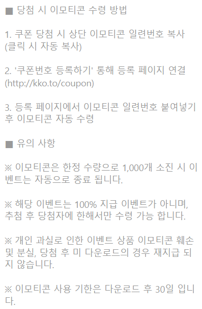 2. 쿠폰 당첨시 쿠폰 내 안내 사항에 따라 이모티콘 사용 등록