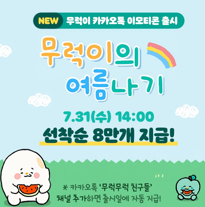 카카오톡 무료 이모티콘. 무럭이와친구들 채널추가
