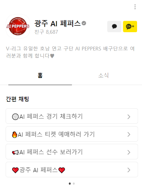 카카오톡 검색창에서 ai페퍼스를