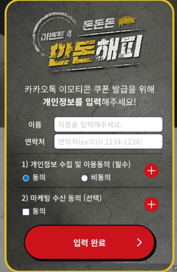 3. 마케팅 수신 동의(선택)은 체크 안해도 이모티콘 받을 수 있습니다.