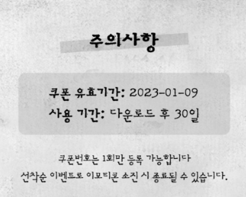 : 2022년 11월 21일(수) 오후 2시 ~ 2023년 1월 9일(월)까지
