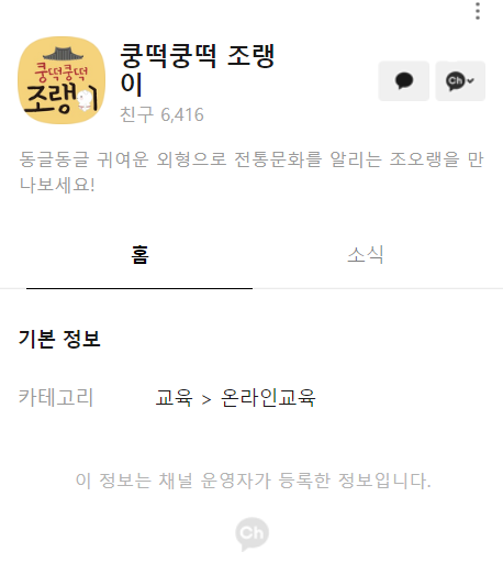 카카오톡에서 조랭이의 전통문화생활을 함께 만나보세요~