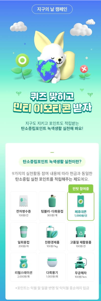 탄소중립포인트 for 카톡 무료 이모티콘(민티의 하루)